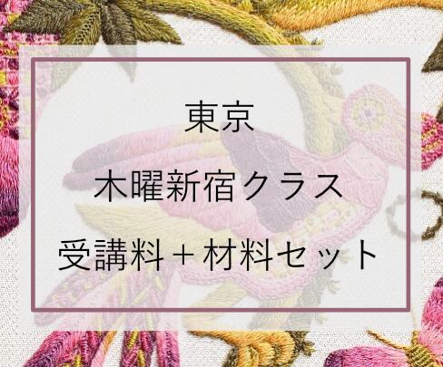 このコースは、英国王立刺繍学校のコースと同じ内容を、動画と日本語で学べる二村エミのオリジナル・コースです。新宿で毎月1回木曜3時間の対面レッスン10回分の受講料と材料セットが一緒になっています。